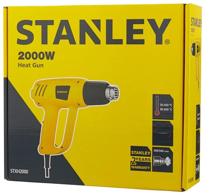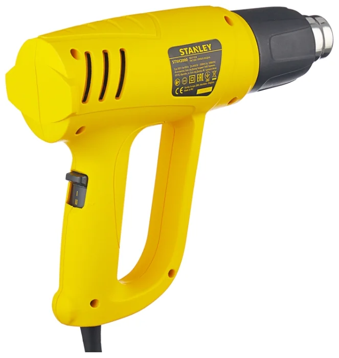 Пистолет, подающий горячий воздух, является востребованным инструментом для склеивания различных материалов. Также его используют для формовки и пайки пластмасс. Строительные фены от STANLEY максимально функциональны и удобны в использовании. На рукоятке модели имеет специальный переключатель. Он позволяет выставлять оптимальную для проведения конкретных операций температуру. От перегрева во время работы двигатель фена защищен специальными вентиляционными отверстиями, обеспечивающими подачу воздуха. К достоинствам STANLEY STXH2000-RU также относят компактные размеры и небольшой вес. Кнопку включения можно зафиксировать. Это позволит повысить комфорт использования инструмента при длительных операциях. Также модель отличается удобной рукояткой эргономичной формы. Оператор не устанет.