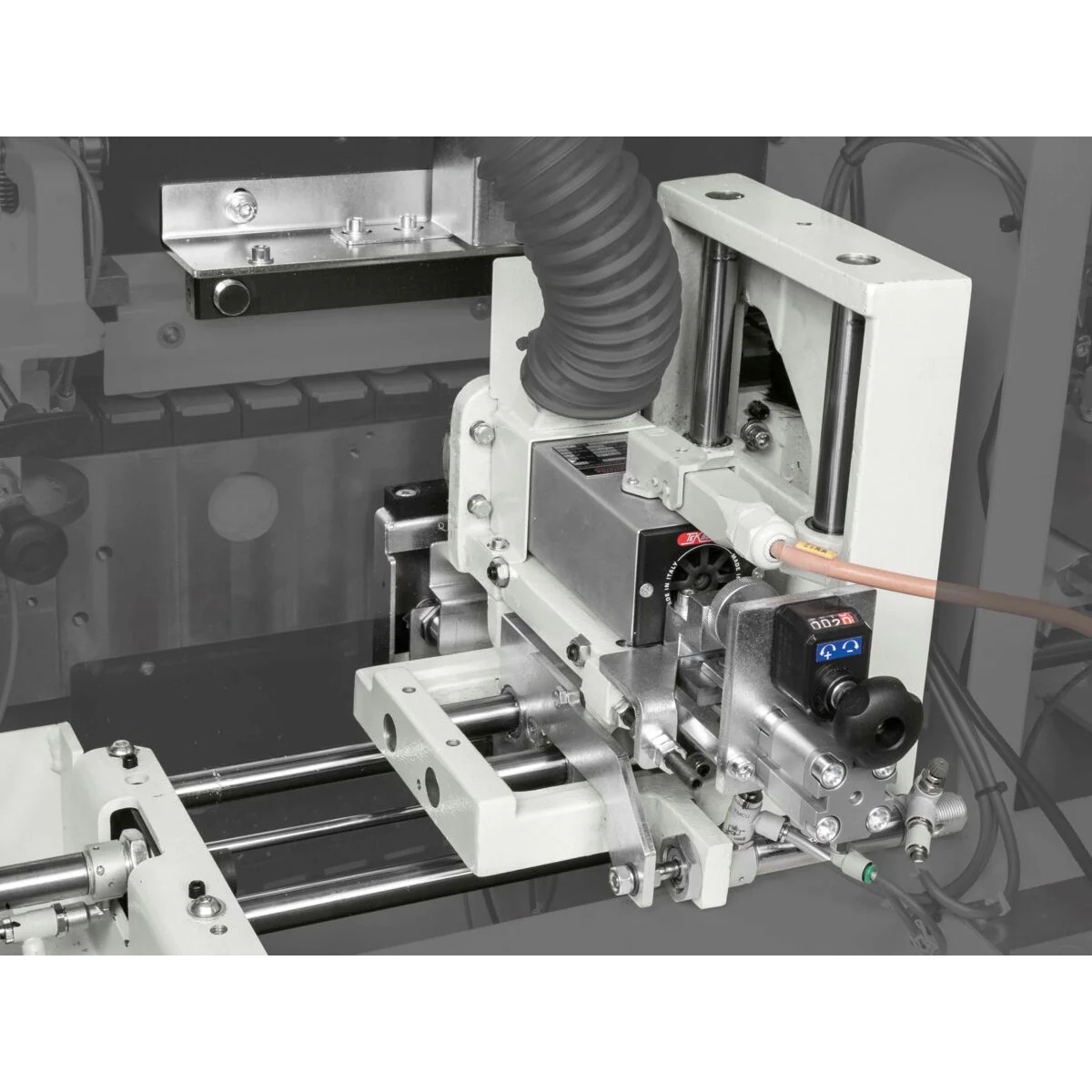Enables gluing and grooving of the workpiece in one pass