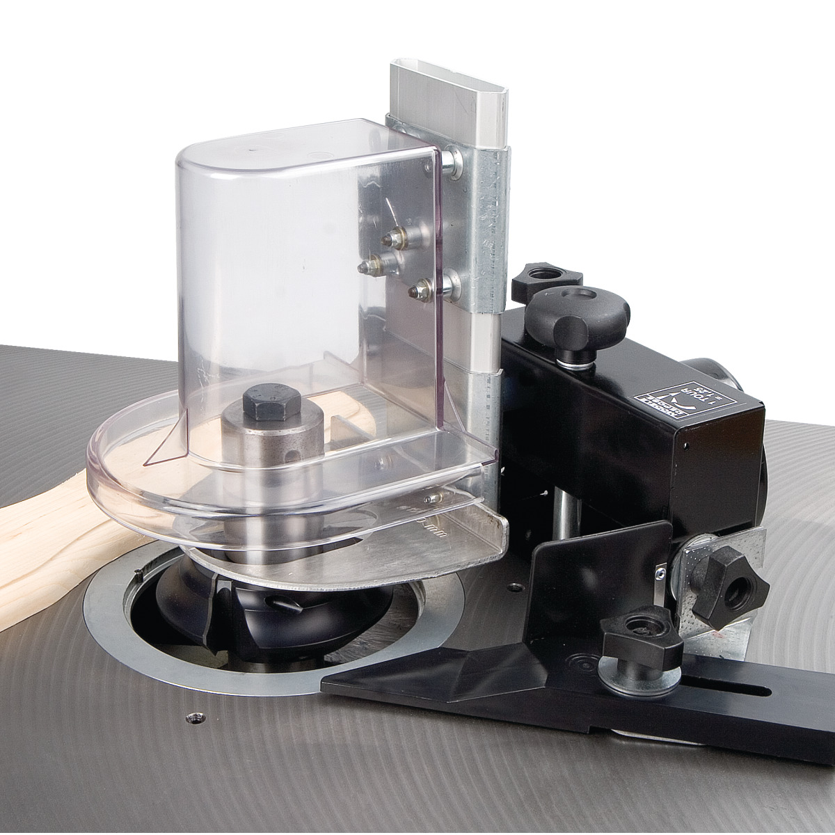 - Защита из фрезерования оборудована в стандартной комплектации с регулируемой высотой направляющей рельсовой дорожкой и промахом для максимальной безопасности.
